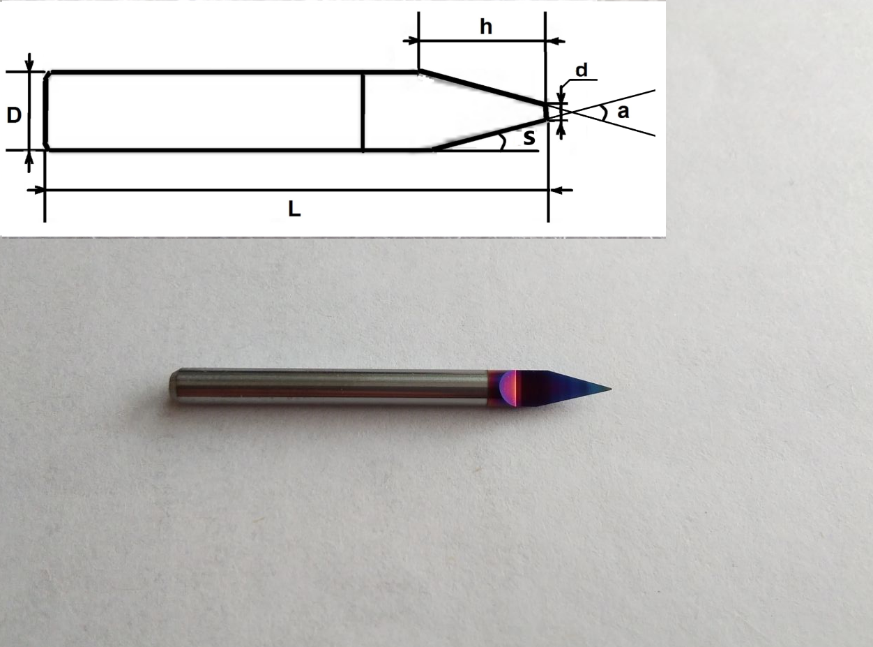 Конические граверы PDJМ. Данный инструмент применяется для обработки таких материалов как: сталь, закалённая сталь, сплавы чугуна, алюминия, меди и т.д. а также акрил, МДФ, дерево прочных пород, двухслойный пластик, ПВХ, ABS.